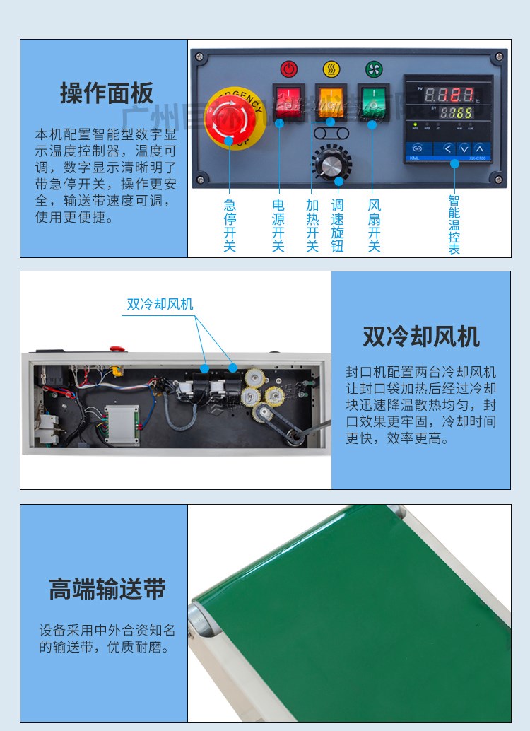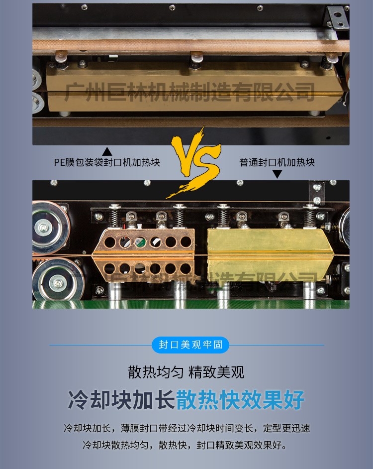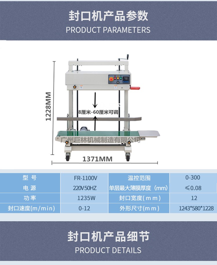 立式pe膜封口机采用立式封口,适合体型较大的物品包装,当包装物品的高度发生变化时,操作人员只需要简单摇动手柄即可使封口高度达到精准数值。
