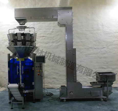 *本机与10头电子组合秤配套在一起,可自动完成计量、送料、充填制袋、日期打印的全部包装过程;